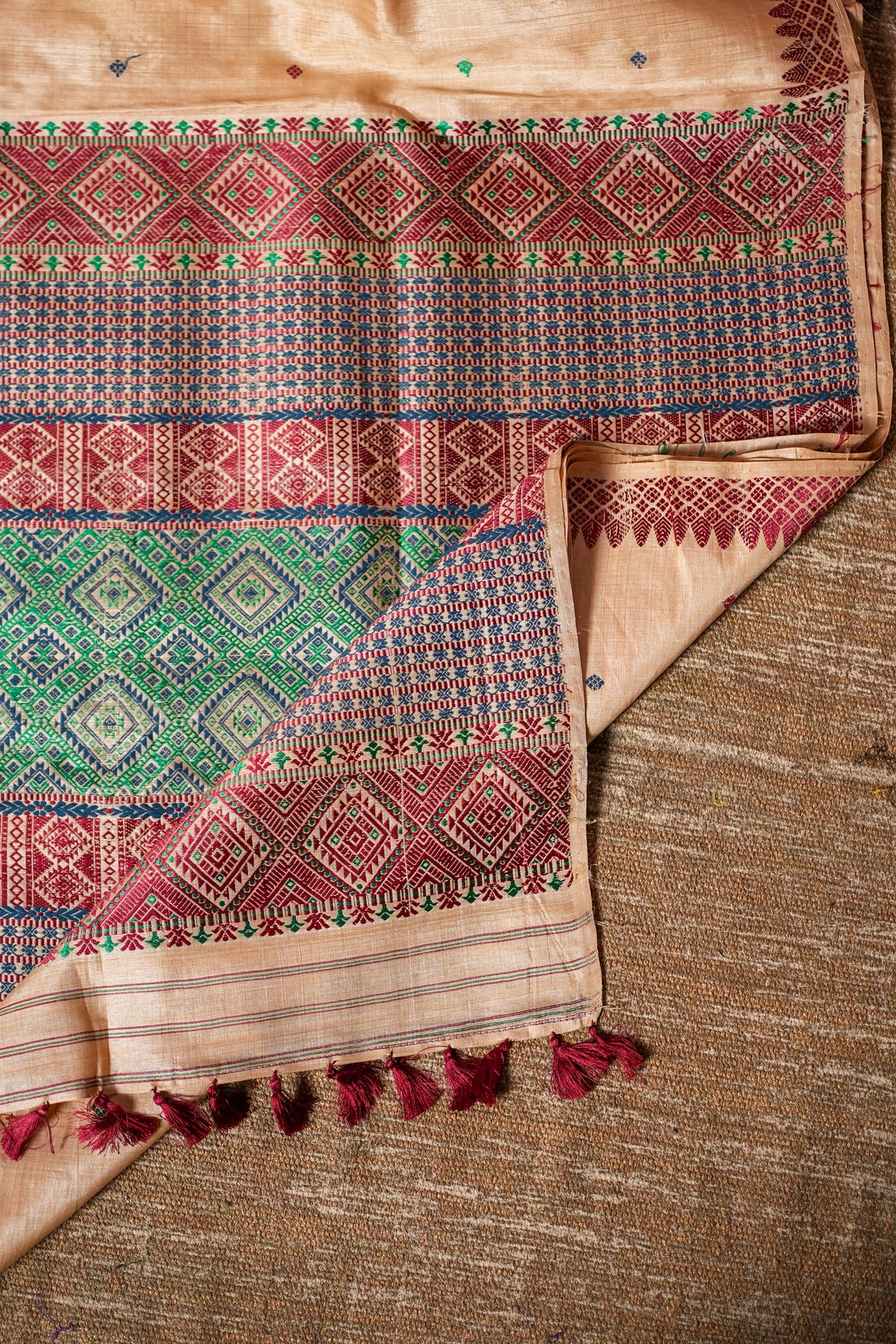 Handwoven in Assam using pure tussar silk (Tossmuga)