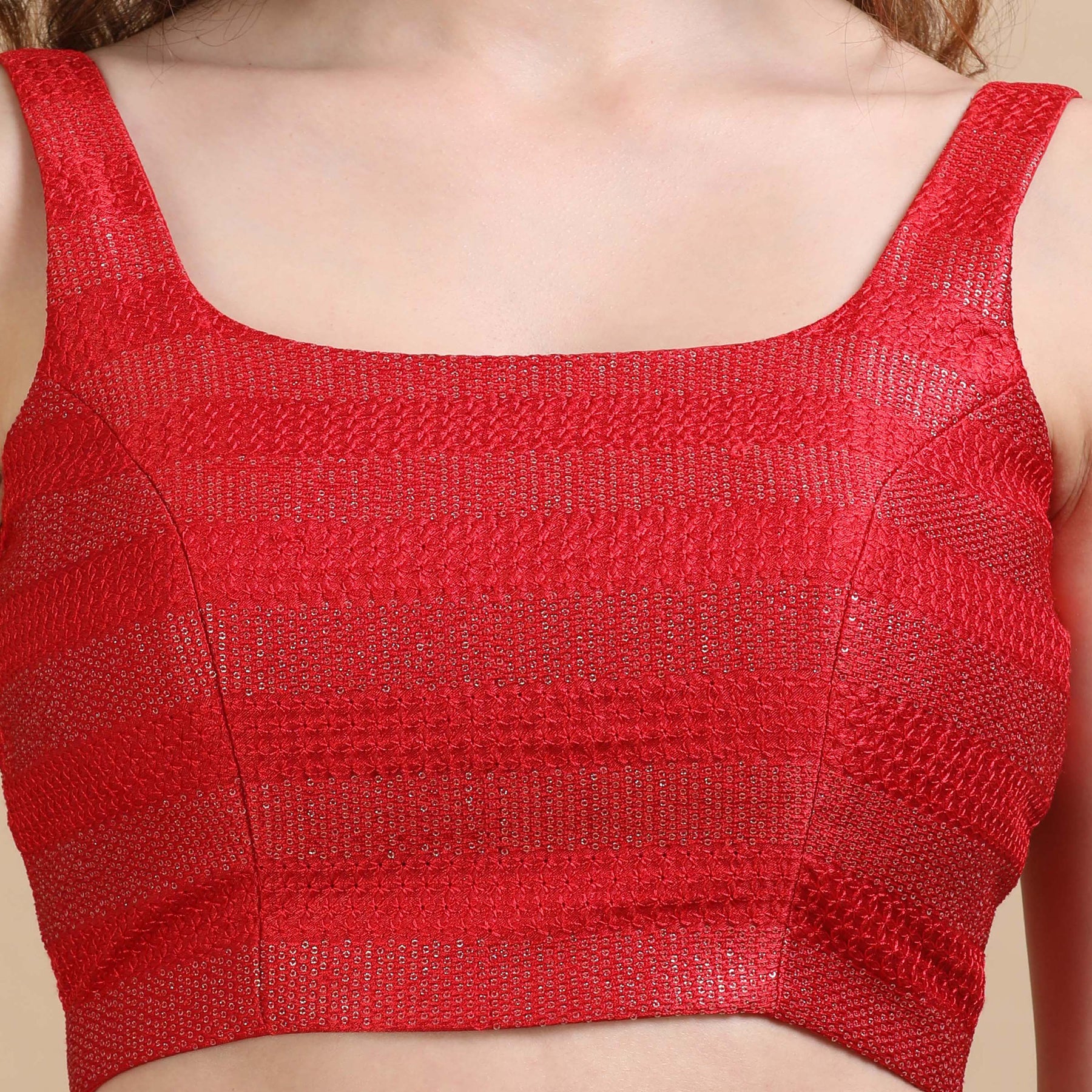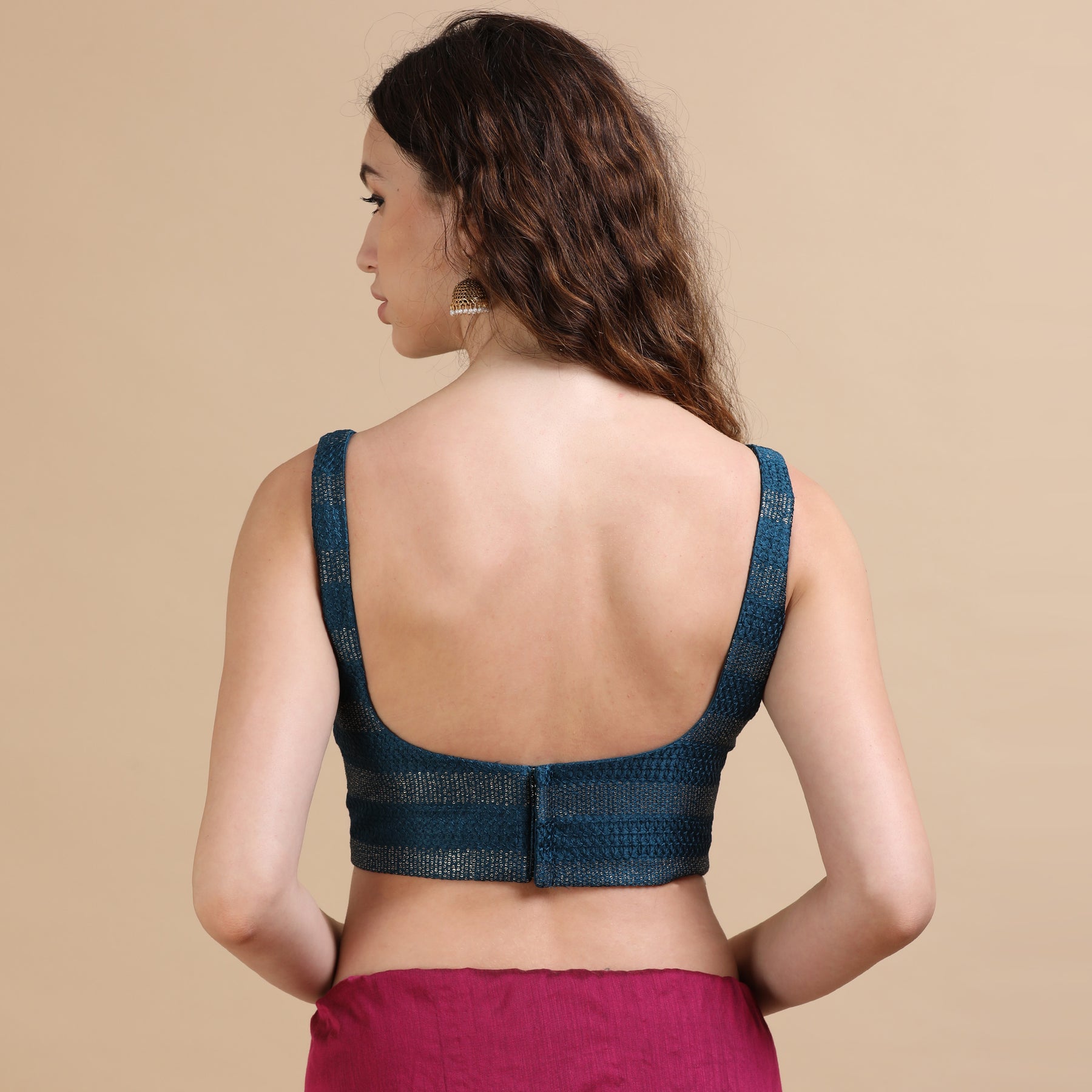 Add charm to your ethnic wardrobe with this Tile Striped Embroidered Ready Made Blouse, designed with a chic square neckline and sleeveless cut. Crafted in rich fabric, this versatile blouse is a perfect choice for festivals and weddings, parties, or semi-formal occasions.